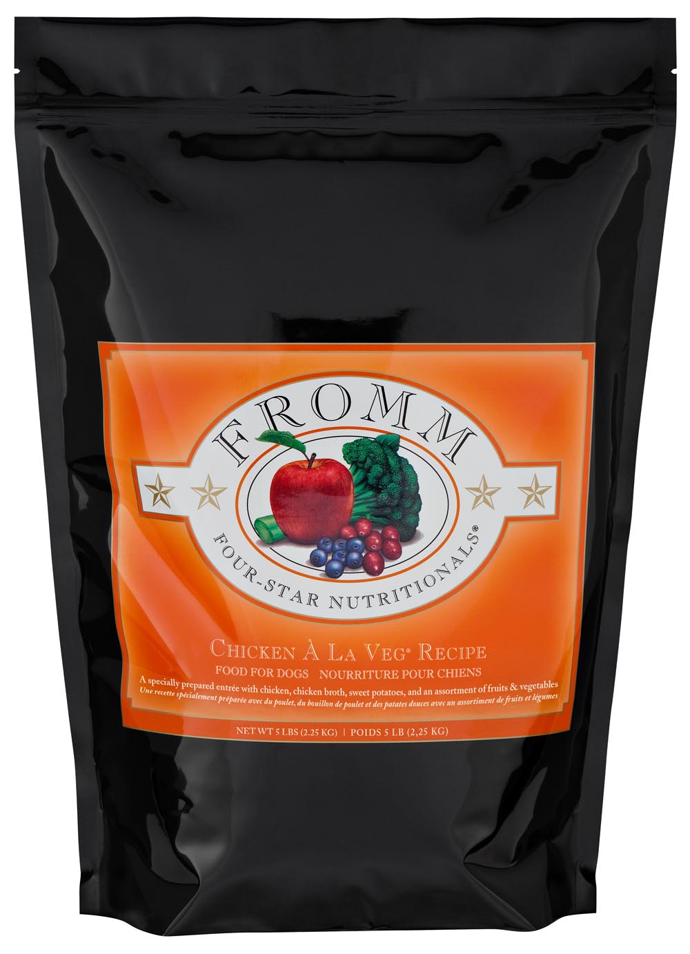 Fromm Four-Star Nutritionals® Chicken À La Veg® Recipe Food for Dogs is formulated to meet the nutritional levels established by the AAFCO Dog Food Nutrient Profiles for all life stages, including growth of large size dogs (70 lb. or more as an adult).