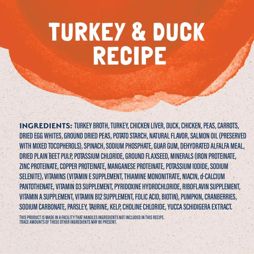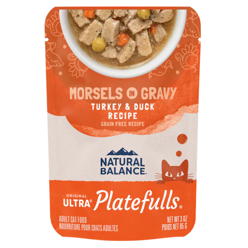 Tender morsels in gravy bring an abundance of taste and nutrition to your cat's bowl. Crafted with premium ingredients cats crave. Turkey and duck provide excellent sources of protein to support healthy muscles; savory turkey broth adds extra flavor. Veggies like peas and carrots add fiber to help support healthy digestion. With taurine to help support heart health and Omega 3&6 fatty acids to help support healthy skin and a beautiful coat. Serve as a complete and balanced meal for adult cats, or a topper over kibble.