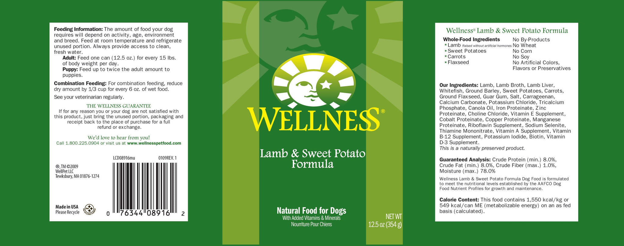 Wellness Complete Health Natural Lamb and Sweet Potato Recipe Wet Canned Dog Food is a healthy grain-free dog food for adult dogs made with carefully chosen, authentic ingredients such as Lamb, Ocean Whitefish, Sweet Potatoes and Carrots. These ingredients will help support your dogs everyday health and provide an optimal balance to fulfill the unique health needs of your dog. This food is best as a daily meal or you can indulge your pet and use it as a topper to their favorite kibble!